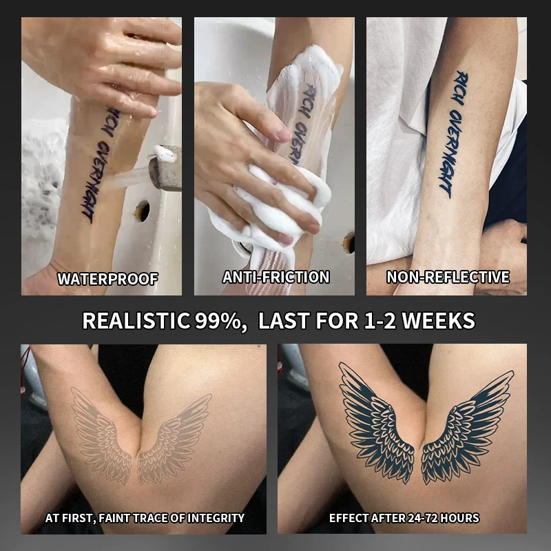 Waterproof, semi-permanent, lasting 12 to 15 days without damage, and gradually disappears with the metabolism of the skin's stratum corneum, and can be bathed and exposed to water normally