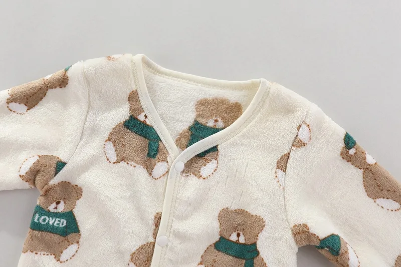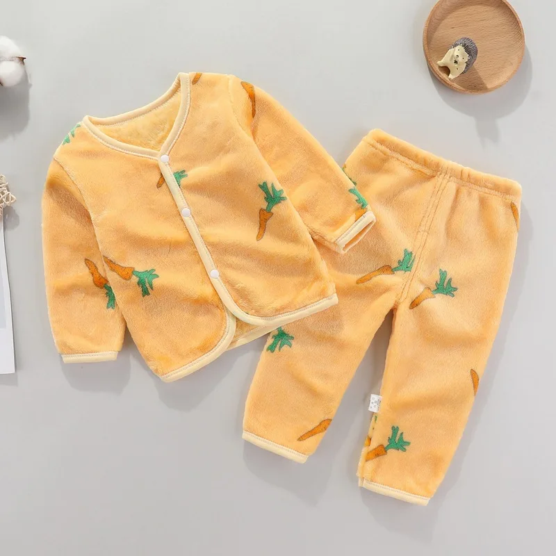 Adorable 2pcs flannel baby clothing set. Soft jacket & pants for newborns 0–24M. Perfect spring & autumn wear for boys and girls.