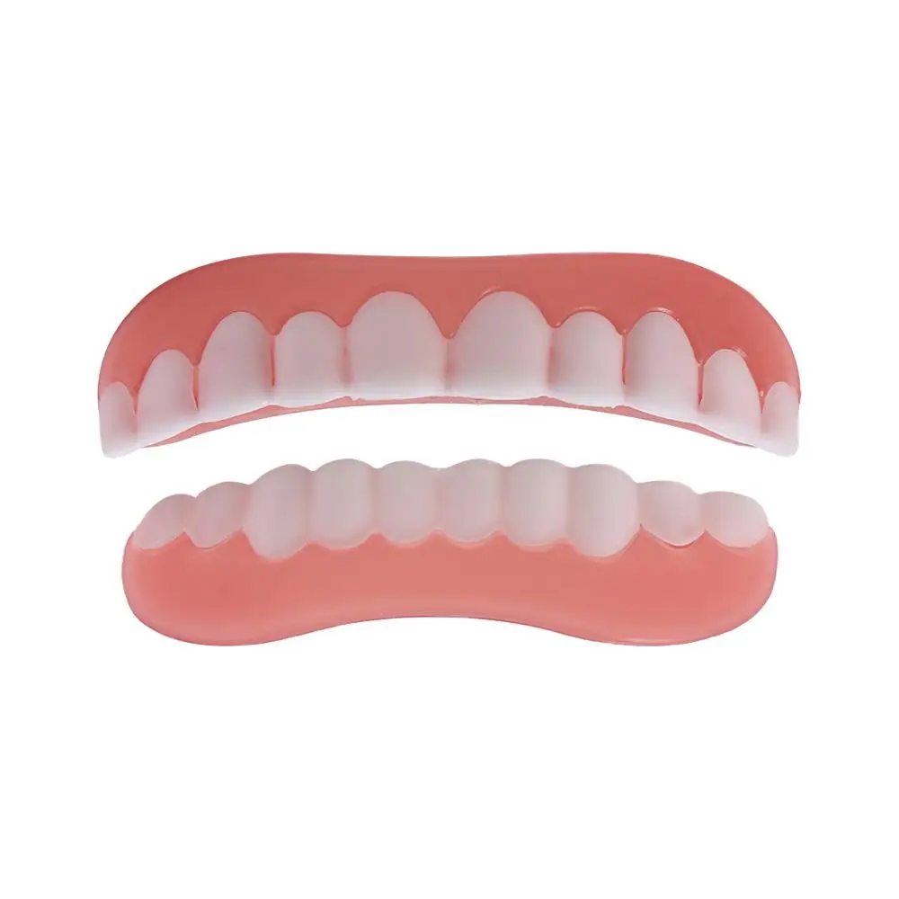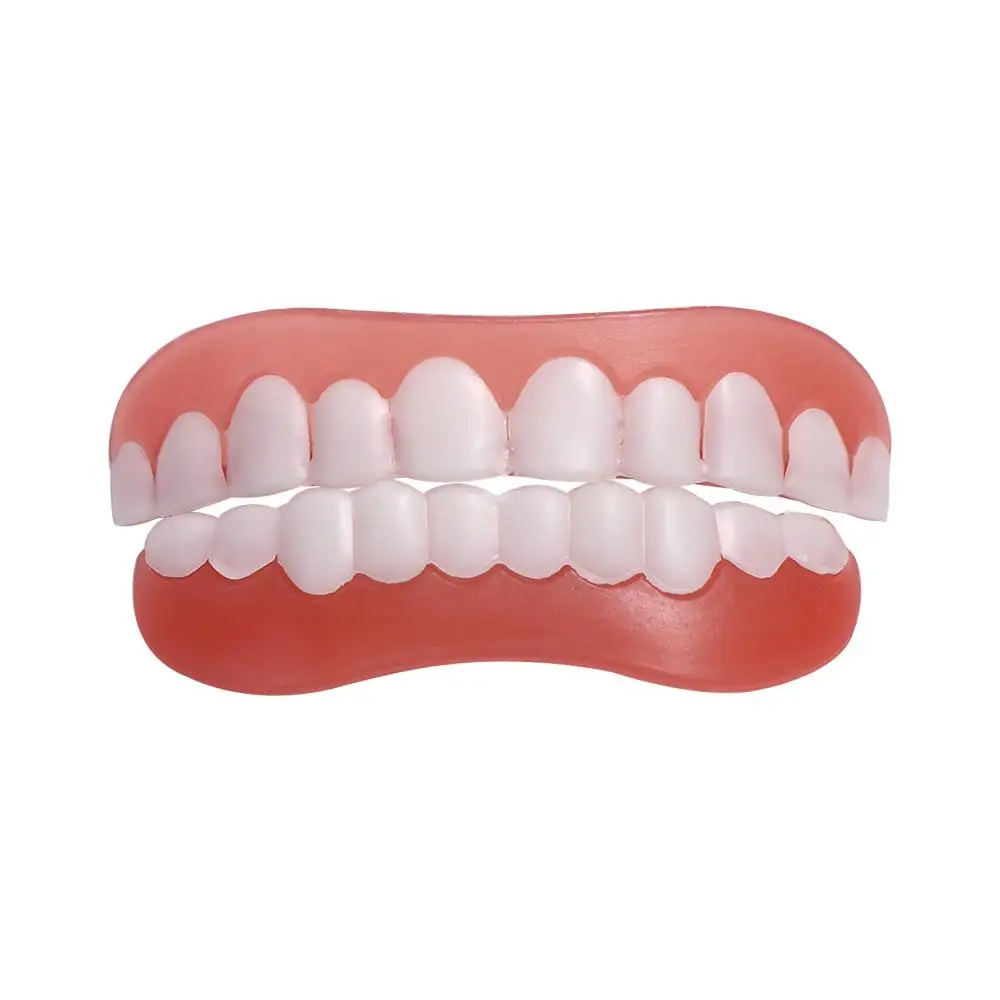 Reusable snap-on teeth braces for instant smile correction and oral care.