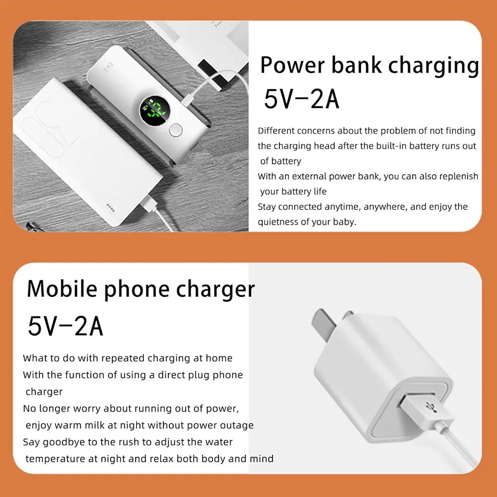 The Portable Baby Bottle Warmer delivers perfect feeding temperature in minutes with rechargeable USB convenience for stress-free feeding at home, traveling, or camping. Whether you're on a road trip, visiting family, or simply moving around the house, this intelligent warmer ensures your baby's milk is always at the ideal temperature with precise temperature control and fast heating technology.